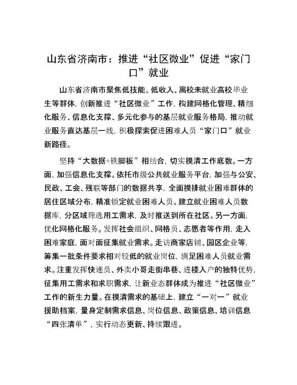 山东省济南市:推进“社区微业”促进“家门口”就业 2024-11-04 Word模板 63 购买前,请一定要先点击这里看看,欢迎持续关注,精彩模板每天推送 预览结束,本文件为word文档,一共3页,共1185字,请购买后,下载后查看 购买前,请一定要先点击这里看看,欢迎持续关注,精彩模板每天推送 资源下载下载价格29 RMBVIP免费升级VIP点击检测网盘有效后购买有任何充值和下载问题请加微信:xuexixuexi66 0 理论学习