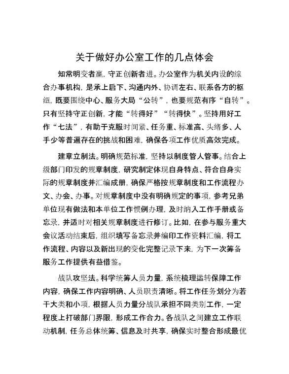 关于做好办公室工作的几点体会 2024-11-04 Word模板 64 购买前,请一定要先点击这里看看,欢迎持续关注,精彩模板每天推送 预览结束,本文件为word文档,一共4页,共1676字,请购买后,下载后查看 购买前,请一定要先点击这里看看,欢迎持续关注,精彩模板每天推送 资源下载下载价格29 RMBVIP免费升级VIP点击检测网盘有效后购买有任何充值和下载问题请加微信:xuexixuexi66 0 理论学习