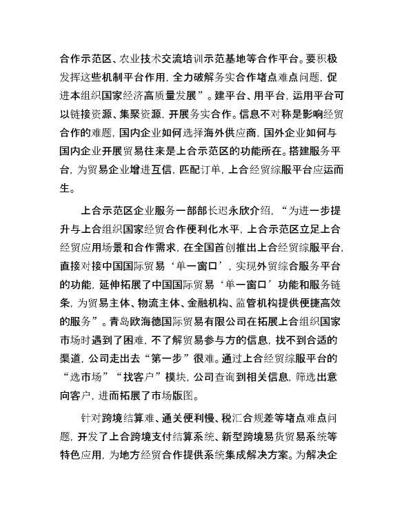打造重大国际交流合作高能级平台——上合示范区建设新时代对外开放新高地的实践探索 2024-11-04 Word模板 62 购买前,请一定要先点击这里看看,欢迎持续关注,精彩模板每天推送 预览结束,本文件为word文档,一共11页,共5219字,请购买后,下载后查看 购买前,请一定要先点击这里看看,欢迎持续关注,精彩模板每天推送 资源下载下载价格29 RMBVIP免费升级VIP点击检测网盘有效后购买有任何充值和下载问题请加微信:xuexixuexi66 0 理论学习