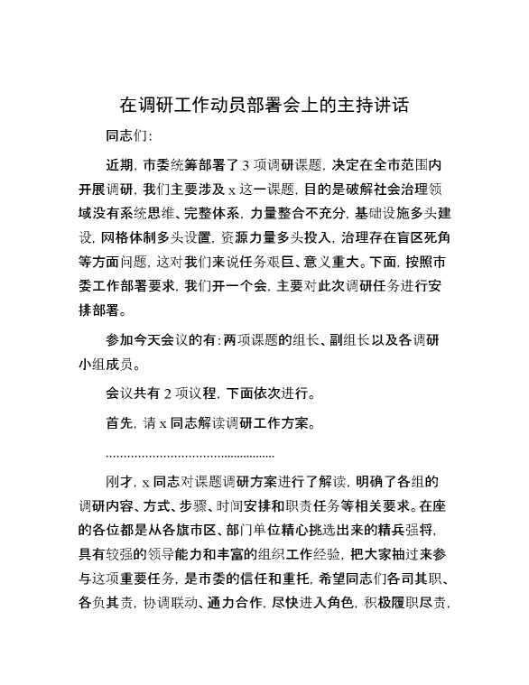 在调研工作动员部署会上的主持讲话 2024-11-04 Word模板 81 购买前,请一定要先点击这里看看,欢迎持续关注,精彩模板每天推送 预览结束,本文件为word文档,一共4页,共1541字,请购买后,下载后查看 购买前,请一定要先点击这里看看,欢迎持续关注,精彩模板每天推送 资源下载下载价格29 RMBVIP免费升级VIP点击检测网盘有效后购买有任何充值和下载问题请加微信:xuexixuexi66 0 演讲发言