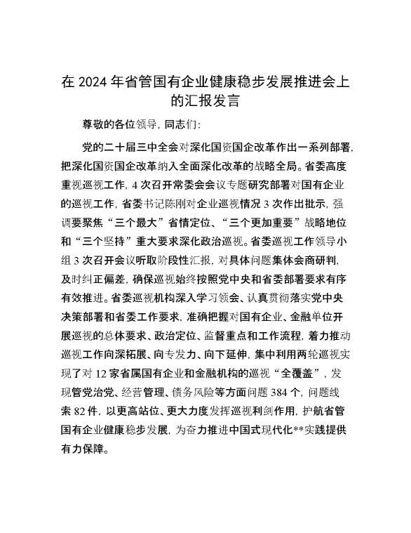在2024年省管国有企业健康稳步发展推进会上的汇报发言 2024-11-04 Word模板 83 购买前,请一定要先点击这里看看,欢迎持续关注,精彩模板每天推送 预览结束,本文件为word文档,一共5页,共2446字,请购买后,下载后查看 购买前,请一定要先点击这里看看,欢迎持续关注,精彩模板每天推送 资源下载下载价格29 RMBVIP免费升级VIP点击检测网盘有效后购买有任何充值和下载问题请加微信:xuexixuexi66 0 演讲发言
