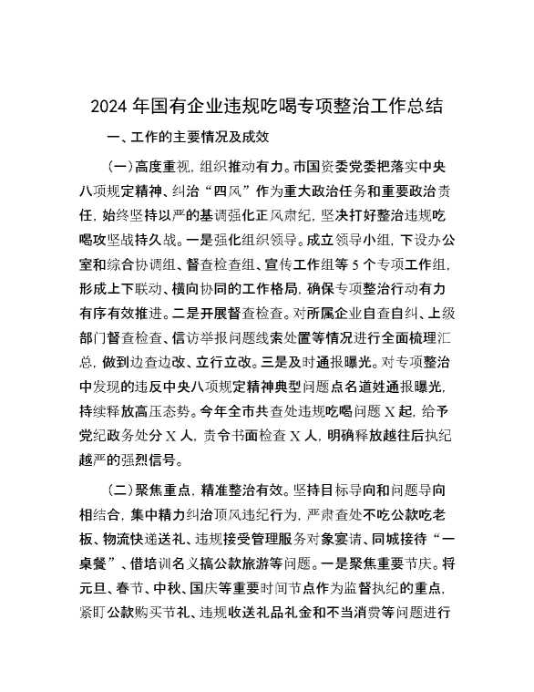 2024年国有企业违规吃喝专项整治工作总结 2024-11-04 Word模板 79 购买前,请一定要先点击这里看看,欢迎持续关注,精彩模板每天推送 预览结束,本文件为word文档,一共5页,共2499字,请购买后,下载后查看 购买前,请一定要先点击这里看看,欢迎持续关注,精彩模板每天推送 资源下载下载价格29 RMBVIP免费升级VIP点击检测网盘有效后购买有任何充值和下载问题请加微信:xuexixuexi66 0 总结汇报