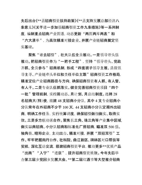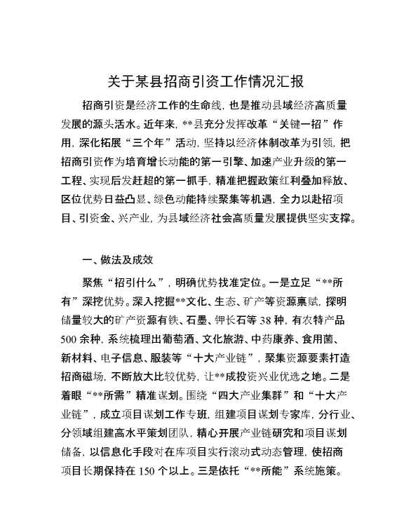 关于某县招商引资工作情况汇报 2024-11-04 Word模板 79 购买前,请一定要先点击这里看看,欢迎持续关注,精彩模板每天推送 预览结束,本文件为word文档,一共7页,共3236字,请购买后,下载后查看 购买前,请一定要先点击这里看看,欢迎持续关注,精彩模板每天推送 资源下载下载价格29 RMBVIP免费升级VIP点击检测网盘有效后购买有任何充值和下载问题请加微信:xuexixuexi66 0 总结汇报