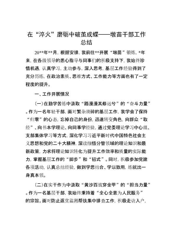 在“淬火”磨砺中破茧成蝶——墩苗干部工作总结 2024-11-04 Word模板 85 购买前,请一定要先点击这里看看,欢迎持续关注,精彩模板每天推送 预览结束,本文件为word文档,一共4页,共1651字,请购买后,下载后查看 购买前,请一定要先点击这里看看,欢迎持续关注,精彩模板每天推送 资源下载下载价格29 RMBVIP免费升级VIP点击检测网盘有效后购买有任何充值和下载问题请加微信:xuexixuexi66 0 总结汇报