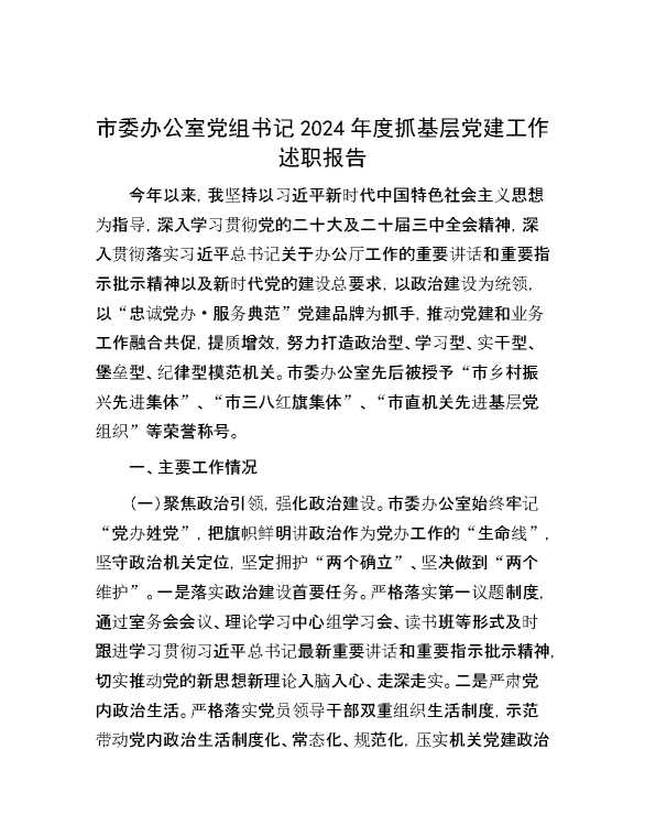 市委办公室党组书记2024年度抓基层党建工作述职报告 2024-11-04 Word模板 77 购买前,请一定要先点击这里看看,欢迎持续关注,精彩模板每天推送 预览结束,本文件为word文档,一共6页,共2795字,请购买后,下载后查看 购买前,请一定要先点击这里看看,欢迎持续关注,精彩模板每天推送 资源下载下载价格29 RMBVIP免费升级VIP点击检测网盘有效后购买有任何充值和下载问题请加微信:xuexixuexi66 0 总结汇报