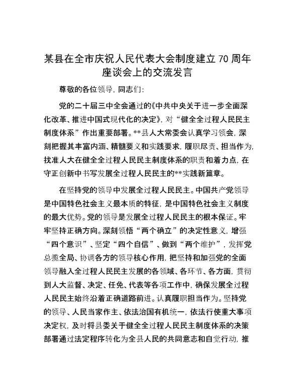 某县在全市庆祝人民代表大会制度建立70周年座谈会上的交流发言 2024-11-06 Word模板 86 购买前,请一定要先点击这里看看,欢迎持续关注,精彩模板每天推送 预览结束,本文件为word文档,一共4页,共1798字,请购买后,下载后查看 购买前,请一定要先点击这里看看,欢迎持续关注,精彩模板每天推送 资源下载下载价格29 RMBVIP免费升级VIP点击检测网盘有效后购买有任何充值和下载问题请加微信:xuexixuexi66 0 演讲发言