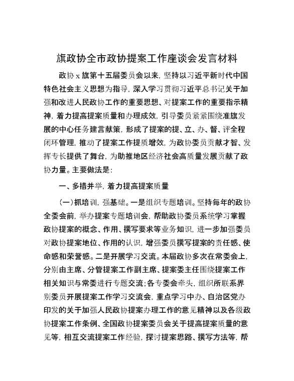 旗政协全市政协提案工作座谈会发言材料 2024-11-06 Word模板 85 购买前,请一定要先点击这里看看,欢迎持续关注,精彩模板每天推送 预览结束,本文件为word文档,一共5页,共2149字,请购买后,下载后查看 购买前,请一定要先点击这里看看,欢迎持续关注,精彩模板每天推送 资源下载下载价格29 RMBVIP免费升级VIP点击检测网盘有效后购买有任何充值和下载问题请加微信:xuexixuexi66 0 演讲发言