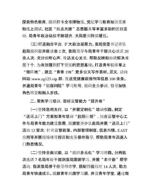 某局2024年度青年干部培养工作总结 2024-11-11 Word模板 86 购买前,请一定要先点击这里看看,欢迎持续关注,精彩模板每天推送 预览结束,本文件为word文档,一共5页,共1965字,请购买后,下载后查看 购买前,请一定要先点击这里看看,欢迎持续关注,精彩模板每天推送 资源下载下载价格29 RMBVIP免费升级VIP点击检测网盘有效后购买有任何充值和下载问题请加微信:xuexixuexi66 0 总结汇报