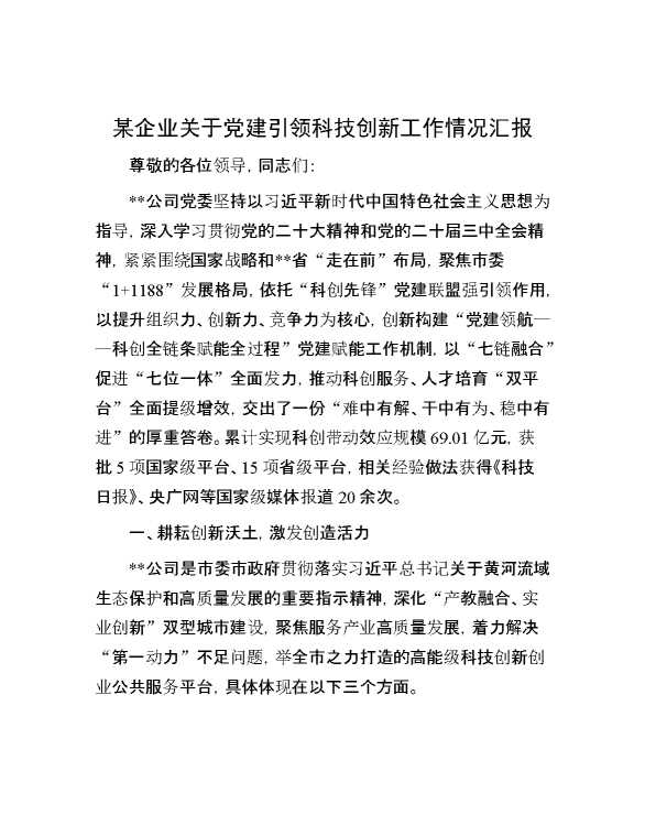 某企业关于党建引领科技创新工作情况汇报 2024-11-11 Word模板 82 购买前,请一定要先点击这里看看,欢迎持续关注,精彩模板每天推送 预览结束,本文件为word文档,一共8页,共3574字,请购买后,下载后查看 购买前,请一定要先点击这里看看,欢迎持续关注,精彩模板每天推送 资源下载下载价格29 RMBVIP免费升级VIP点击检测网盘有效后购买有任何充值和下载问题请加微信:xuexixuexi66 0 总结汇报