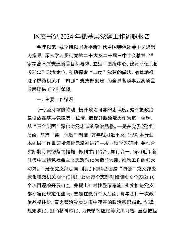 区委书记2024年抓基层党建工作述职报告 2024-11-11 Word模板 86 购买前,请一定要先点击这里看看,欢迎持续关注,精彩模板每天推送 预览结束,本文件为word文档,一共5页,共2176字,请购买后,下载后查看 购买前,请一定要先点击这里看看,欢迎持续关注,精彩模板每天推送 资源下载下载价格29 RMBVIP免费升级VIP点击检测网盘有效后购买有任何充值和下载问题请加微信:xuexixuexi66 0 总结汇报