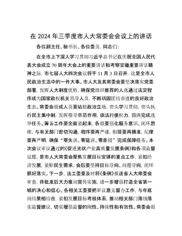在2024年三季度市人大常委会会议上的讲话 2024-11-11 Word模板 83 购买前,请一定要先点击这里看看,欢迎持续关注,精彩模板每天推送 预览结束,本文件为word文档,一共5页,共2199字,请购买后,下载后查看 购买前,请一定要先点击这里看看,欢迎持续关注,精彩模板每天推送 资源下载下载价格29 RMBVIP免费升级VIP点击检测网盘有效后购买有任何充值和下载问题请加微信:xuexixuexi66 0 演讲发言