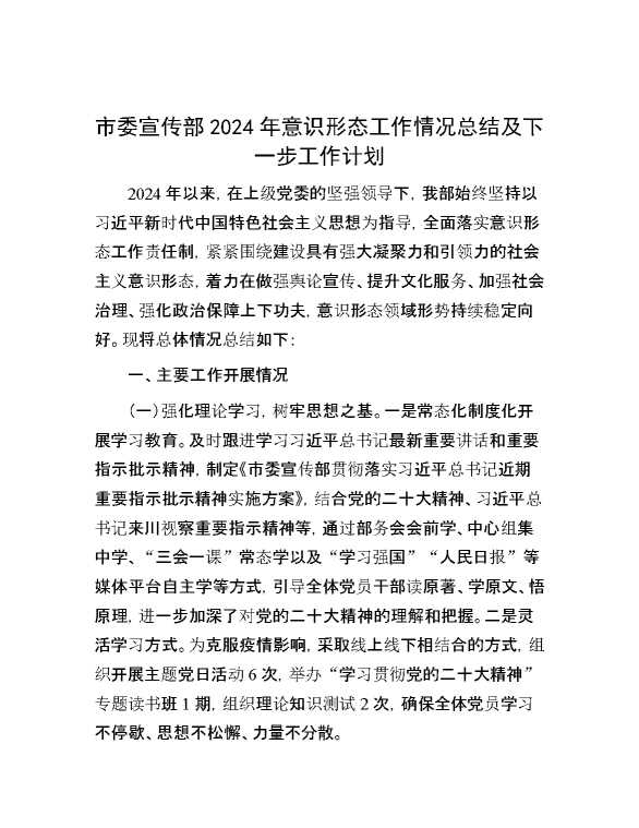 市委宣传部2024年意识形态工作情况总结及下一步工作计划 2024-11-25 Word模板 77 购买前,请一定要先点击这里看看,欢迎持续关注,精彩模板每天推送 预览结束,本文件为word文档,一共7页,共3130字,请购买后,下载后查看 购买前,请一定要先点击这里看看,欢迎持续关注,精彩模板每天推送 资源下载下载价格29 RMBVIP免费升级VIP点击检测网盘有效后购买有任何充值和下载问题请加微信:xuexixuexi66 0 总结汇报