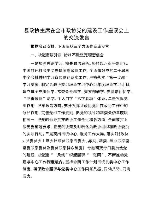 县政协主席在全市政协党的建设工作座谈会上的交流发言 2024-11-25 Word模板 66 购买前,请一定要先点击这里看看,欢迎持续关注,精彩模板每天推送 预览结束,本文件为word文档,一共3页,共1400字,请购买后,下载后查看 购买前,请一定要先点击这里看看,欢迎持续关注,精彩模板每天推送 资源下载下载价格29 RMBVIP免费升级VIP点击检测网盘有效后购买有任何充值和下载问题请加微信:xuexixuexi66 0 演讲发言