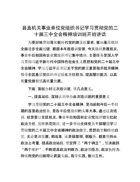 县直机关事业单位党组织书记学习贯彻党的二十届三中全会精神培训班开班讲话 2024-11-25 Word模板 68 购买前,请一定要先点击这里看看,欢迎持续关注,精彩模板每天推送 预览结束,本文件为word文档,一共4页,共1835字,请购买后,下载后查看 购买前,请一定要先点击这里看看,欢迎持续关注,精彩模板每天推送 资源下载下载价格29 RMBVIP免费升级VIP点击检测网盘有效后购买有任何充值和下载问题请加微信:xuexixuexi66 0 演讲发言