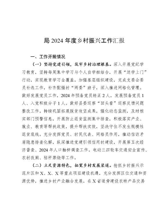 局2024年度乡村振兴工作汇报 2024-12-09 Word模板 94 购买前,请一定要先点击这里看看,欢迎持续关注,精彩模板每天推送 预览结束,本文件为word文档,一共4页,共1402字,请购买后,下载后查看 购买前,请一定要先点击这里看看,欢迎持续关注,精彩模板每天推送 资源下载下载价格29 RMBVIP免费升级VIP点击检测网盘有效后购买有任何充值和下载问题请加微信:xuexixuexi66 0 总结汇报