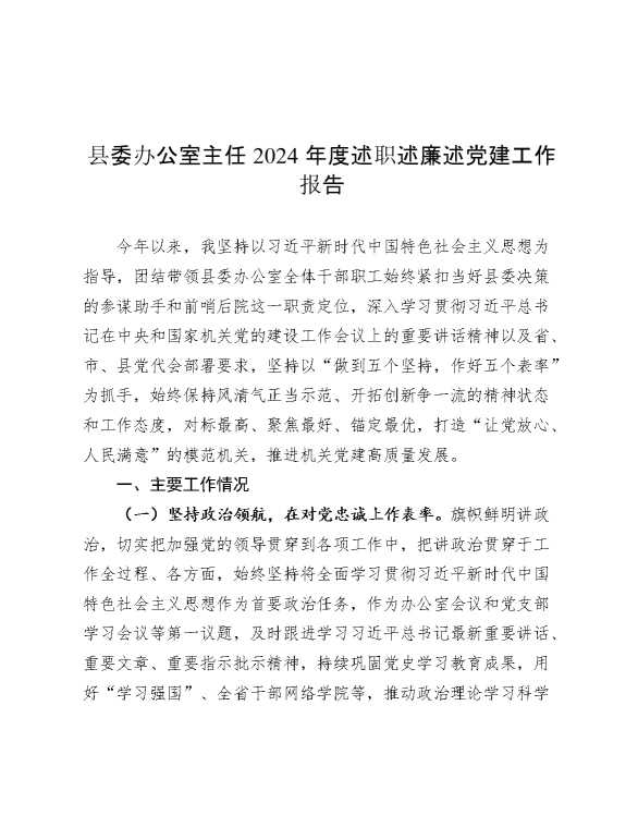 县委办公室主任2024年度述职述廉述党建工作报告 2024-12-09 Word模板 123 购买前,请一定要先点击这里看看,欢迎持续关注,精彩模板每天推送 预览结束,本文件为word文档,一共7页,共2826字,请购买后,下载后查看 购买前,请一定要先点击这里看看,欢迎持续关注,精彩模板每天推送 资源下载下载价格29 RMBVIP免费升级VIP点击检测网盘有效后购买有任何充值和下载问题请加微信:xuexixuexi66 0 总结汇报