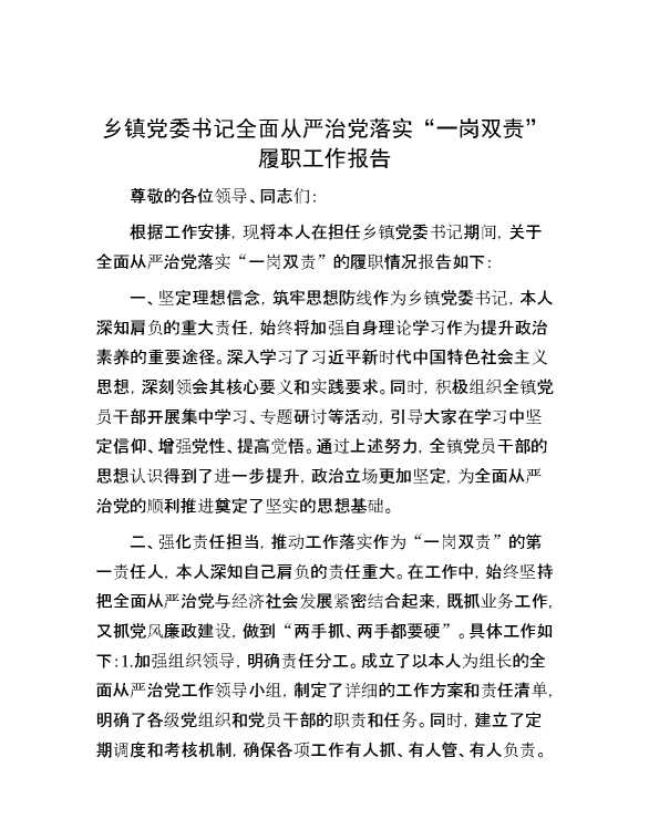 乡镇党委书记全面从严治党落实“一岗双责”履职工作报告 2024-12-09 Word模板 92 购买前,请一定要先点击这里看看,欢迎持续关注,精彩模板每天推送 预览结束,本文件为word文档,一共4页,共1963字,请购买后,下载后查看 购买前,请一定要先点击这里看看,欢迎持续关注,精彩模板每天推送 资源下载下载价格29 RMBVIP免费升级VIP点击检测网盘有效后购买有任何充值和下载问题请加微信:xuexixuexi66 0 总结汇报