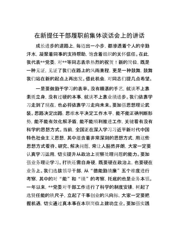 在新提任干部履职前集体谈话会上的讲话 2024-12-09 Word模板 110 购买前,请一定要先点击这里看看,欢迎持续关注,精彩模板每天推送 预览结束,本文件为word文档,一共4页,共1668字,请购买后,下载后查看 购买前,请一定要先点击这里看看,欢迎持续关注,精彩模板每天推送 资源下载下载价格29 RMBVIP免费升级VIP点击检测网盘有效后购买有任何充值和下载问题请加微信:xuexixuexi66 0 演讲发言