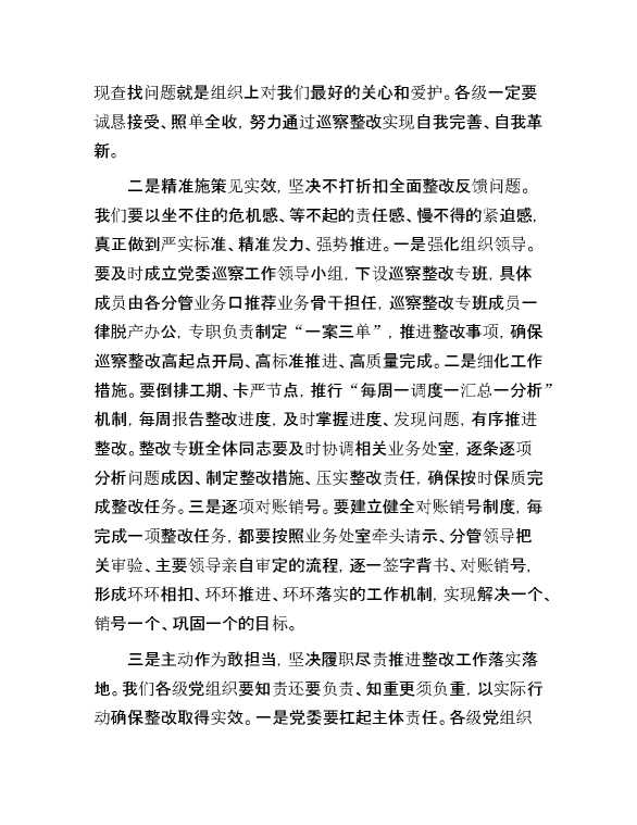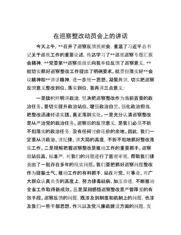 在巡察整改动员会上的讲话 2024-12-09 Word模板 84 购买前,请一定要先点击这里看看,欢迎持续关注,精彩模板每天推送 预览结束,本文件为word文档,一共4页,共1546字,请购买后,下载后查看 购买前,请一定要先点击这里看看,欢迎持续关注,精彩模板每天推送 资源下载下载价格29 RMBVIP免费升级VIP点击检测网盘有效后购买有任何充值和下载问题请加微信:xuexixuexi66 0 演讲发言