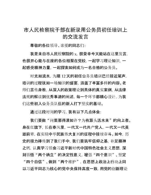 市人民检察院干部在新录用公务员初任培训上的交流发言 2024-12-09 Word模板 94 购买前,请一定要先点击这里看看,欢迎持续关注,精彩模板每天推送 预览结束,本文件为word文档,一共3页,共1204字,请购买后,下载后查看 购买前,请一定要先点击这里看看,欢迎持续关注,精彩模板每天推送 资源下载下载价格29 RMBVIP免费升级VIP点击检测网盘有效后购买有任何充值和下载问题请加微信:xuexixuexi66 0 演讲发言