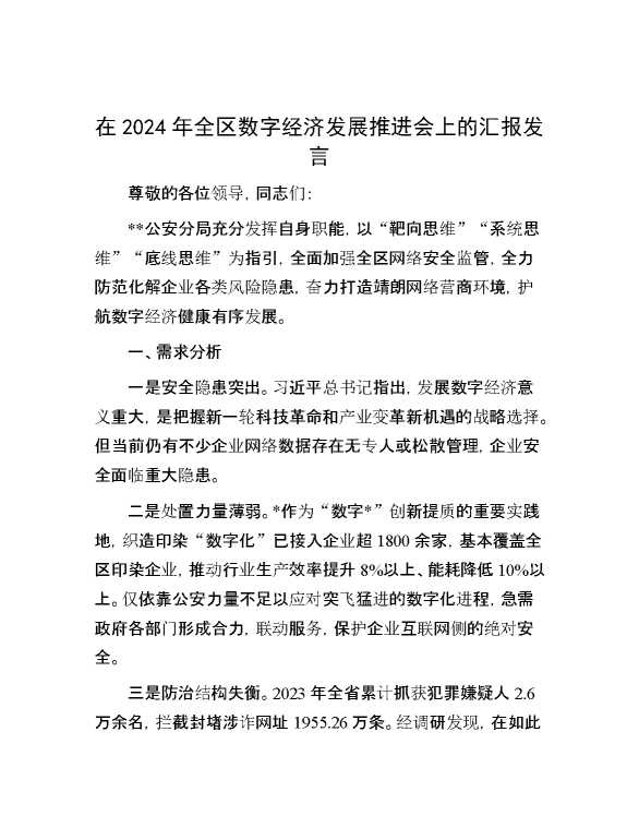 在2024年全区数字经济发展推进会上的汇报发言 2024-12-09 Word模板 88 购买前,请一定要先点击这里看看,欢迎持续关注,精彩模板每天推送 预览结束,本文件为word文档,一共4页,共1478字,请购买后,下载后查看 购买前,请一定要先点击这里看看,欢迎持续关注,精彩模板每天推送 资源下载下载价格29 RMBVIP免费升级VIP点击检测网盘有效后购买有任何充值和下载问题请加微信:xuexixuexi66 0 演讲发言