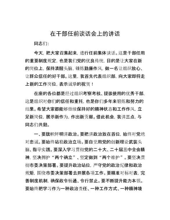 在干部任前谈话会上的讲话 2024-12-09 Word模板 82 购买前,请一定要先点击这里看看,欢迎持续关注,精彩模板每天推送 预览结束,本文件为word文档,一共3页,共1153字,请购买后,下载后查看 购买前,请一定要先点击这里看看,欢迎持续关注,精彩模板每天推送 资源下载下载价格29 RMBVIP免费升级VIP点击检测网盘有效后购买有任何充值和下载问题请加微信:xuexixuexi66 0 演讲发言