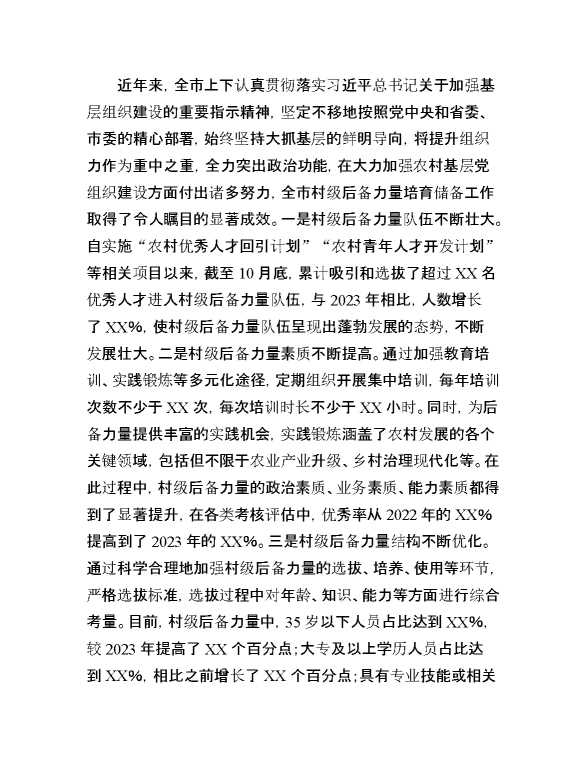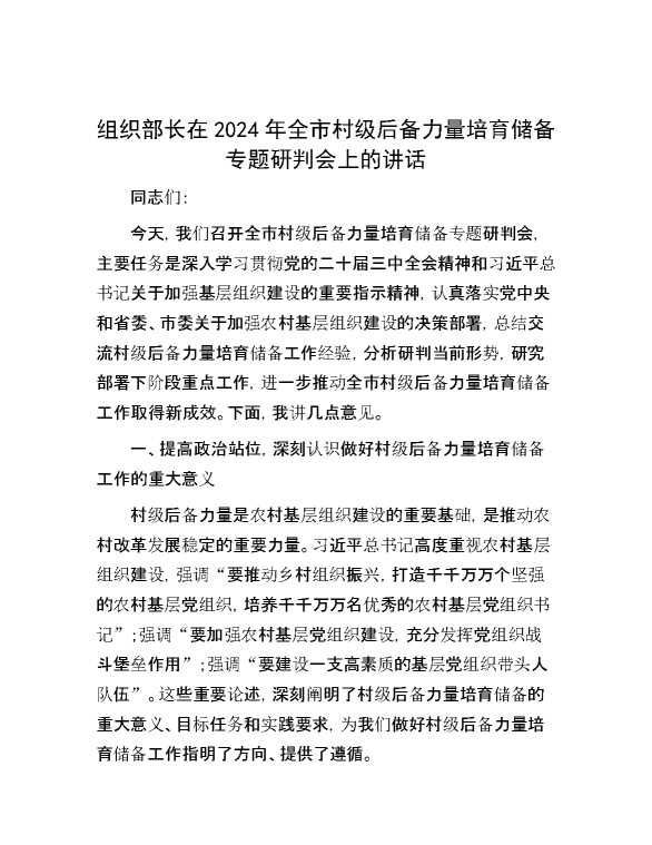 组织部长在2024年全市村级后备力量培育储备专题研判会上的讲话 2024-12-09 Word模板 81 购买前,请一定要先点击这里看看,欢迎持续关注,精彩模板每天推送 预览结束,本文件为word文档,一共7页,共3146字,请购买后,下载后查看 购买前,请一定要先点击这里看看,欢迎持续关注,精彩模板每天推送 资源下载下载价格29 RMBVIP免费升级VIP点击检测网盘有效后购买有任何充值和下载问题请加微信:xuexixuexi66 0 演讲发言