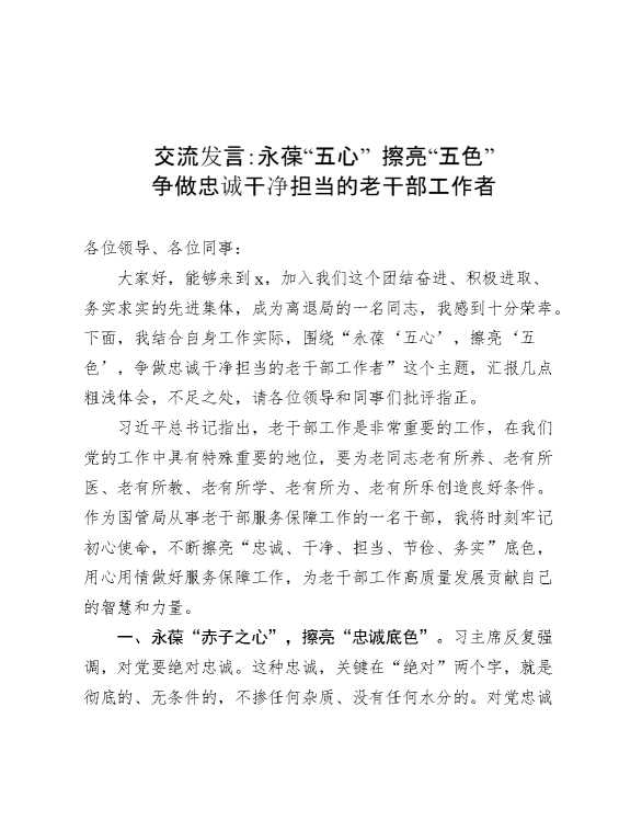 交流发言:永葆“五心” 擦亮“五色” 争做忠诚干净担当的老干部工作者 2024-12-09 Word模板 83 购买前,请一定要先点击这里看看,欢迎持续关注,精彩模板每天推送 预览结束,本文件为word文档,一共5页,共1908字,请购买后,下载后查看 购买前,请一定要先点击这里看看,欢迎持续关注,精彩模板每天推送 资源下载下载价格29 RMBVIP免费升级VIP点击检测网盘有效后购买有任何充值和下载问题请加微信:xuexixuexi66 0 演讲发言