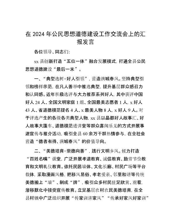 在2024年公民思想道德建设工作交流会上的汇报发言 2024-12-09 Word模板 79 购买前,请一定要先点击这里看看,欢迎持续关注,精彩模板每天推送 预览结束,本文件为word文档,一共5页,共2257字,请购买后,下载后查看 购买前,请一定要先点击这里看看,欢迎持续关注,精彩模板每天推送 资源下载下载价格29 RMBVIP免费升级VIP点击检测网盘有效后购买有任何充值和下载问题请加微信:xuexixuexi66 0 演讲发言