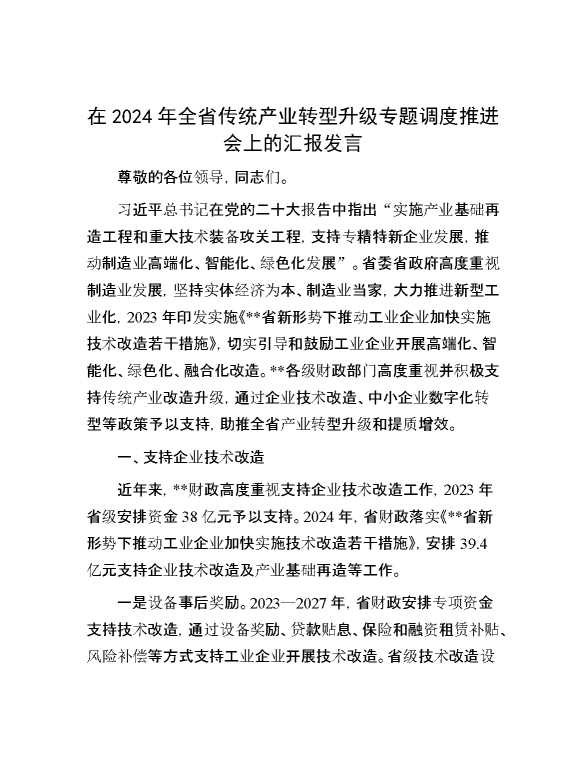 在2024年全省传统产业转型升级专题调度推进会上的汇报发言 2024-12-09 Word模板 81 购买前,请一定要先点击这里看看,欢迎持续关注,精彩模板每天推送 预览结束,本文件为word文档,一共5页,共2487字,请购买后,下载后查看 购买前,请一定要先点击这里看看,欢迎持续关注,精彩模板每天推送 资源下载下载价格29 RMBVIP免费升级VIP点击检测网盘有效后购买有任何充值和下载问题请加微信:xuexixuexi66 0 演讲发言