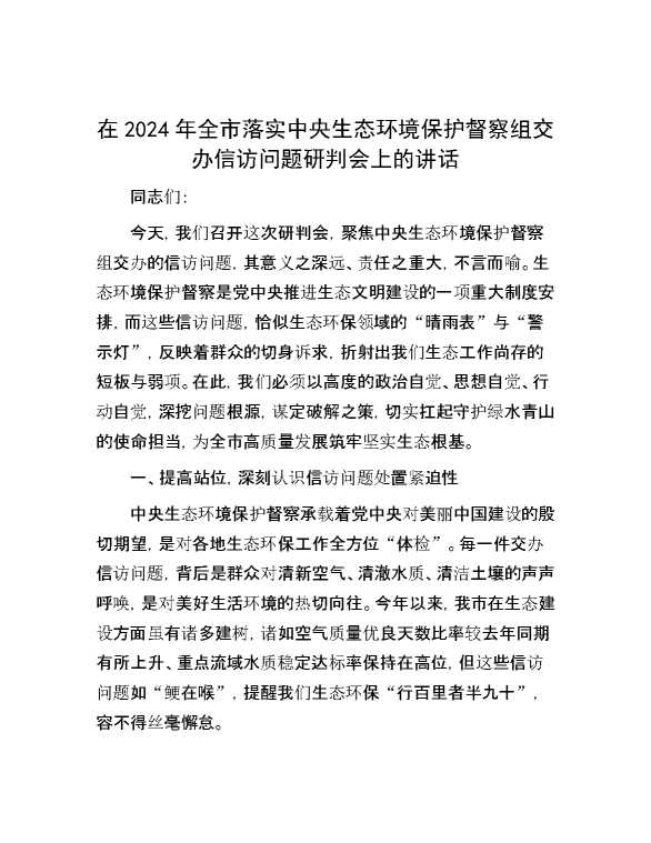 在2024年全市落实中央生态环境保护督察组交办信访问题研判会上的讲话 2024-12-09 Word模板 83 购买前,请一定要先点击这里看看,欢迎持续关注,精彩模板每天推送 预览结束,本文件为word文档,一共8页,共3100字,请购买后,下载后查看 购买前,请一定要先点击这里看看,欢迎持续关注,精彩模板每天推送 资源下载下载价格29 RMBVIP免费升级VIP点击检测网盘有效后购买有任何充值和下载问题请加微信:xuexixuexi66 0 演讲发言