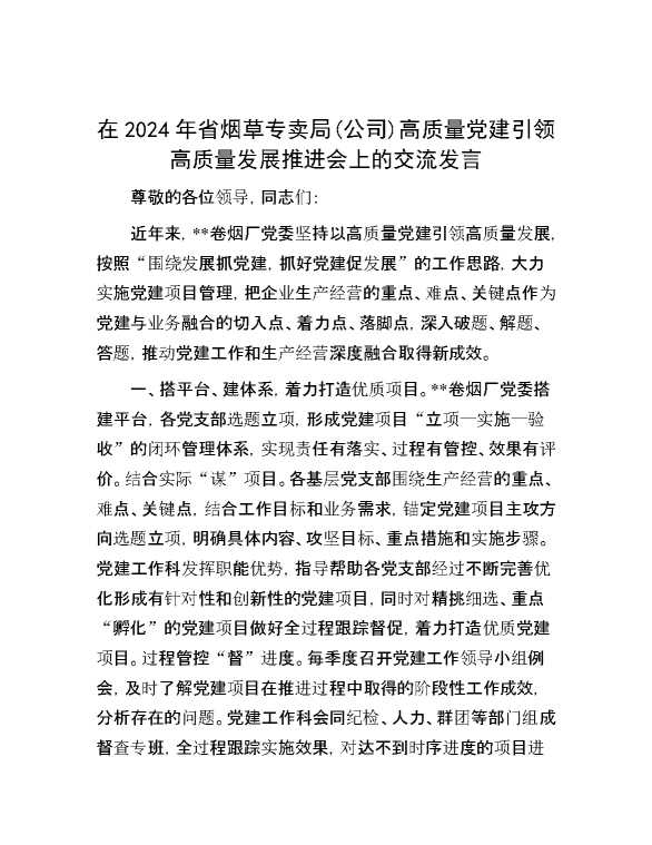 在2024年省烟草专卖局(公司)高质量党建引领高质量发展推进会上的交流发言 2024-12-09 Word模板 83 购买前,请一定要先点击这里看看,欢迎持续关注,精彩模板每天推送 预览结束,本文件为word文档,一共7页,共3182字,请购买后,下载后查看 购买前,请一定要先点击这里看看,欢迎持续关注,精彩模板每天推送 资源下载下载价格29 RMBVIP免费升级VIP点击检测网盘有效后购买有任何充值和下载问题请加微信:xuexixuexi66 0 演讲发言