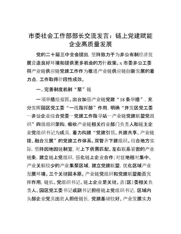 市委社会工作部部长交流发言:链上党建赋能企业高质量发展 2024-12-09 Word模板 87 购买前,请一定要先点击这里看看,欢迎持续关注,精彩模板每天推送 预览结束,本文件为word文档,一共3页,共992字,请购买后,下载后查看 购买前,请一定要先点击这里看看,欢迎持续关注,精彩模板每天推送 资源下载下载价格29 RMBVIP免费升级VIP点击检测网盘有效后购买有任何充值和下载问题请加微信:xuexixuexi66 0 演讲发言