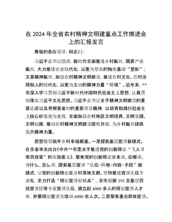 在2024年全省农村精神文明建重点工作推进会上的汇报发言 2024-12-09 Word模板 84 购买前,请一定要先点击这里看看,欢迎持续关注,精彩模板每天推送 预览结束,本文件为word文档,一共5页,共2485字,请购买后,下载后查看 购买前,请一定要先点击这里看看,欢迎持续关注,精彩模板每天推送 资源下载下载价格29 RMBVIP免费升级VIP点击检测网盘有效后购买有任何充值和下载问题请加微信:xuexixuexi66 0 演讲发言