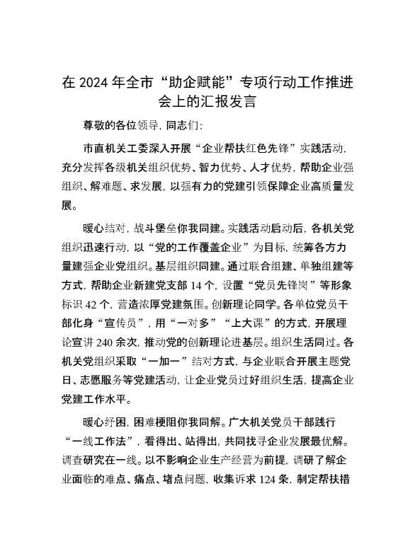 在2024年全市“助企赋能”专项行动工作推进会上的汇报发言 2024-12-09 Word模板 83 购买前,请一定要先点击这里看看,欢迎持续关注,精彩模板每天推送 预览结束,本文件为word文档,一共4页,共1877字,请购买后,下载后查看 购买前,请一定要先点击这里看看,欢迎持续关注,精彩模板每天推送 资源下载下载价格29 RMBVIP免费升级VIP点击检测网盘有效后购买有任何充值和下载问题请加微信:xuexixuexi66 0 演讲发言