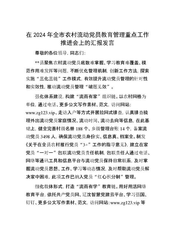 在2024年全市农村流动党员教育管理重点工作推进会上的汇报发言 2024-12-09 Word模板 91 购买前,请一定要先点击这里看看,欢迎持续关注,精彩模板每天推送 预览结束,本文件为word文档,一共4页,共1714字,请购买后,下载后查看 购买前,请一定要先点击这里看看,欢迎持续关注,精彩模板每天推送 资源下载下载价格29 RMBVIP免费升级VIP点击检测网盘有效后购买有任何充值和下载问题请加微信:xuexixuexi66 0 演讲发言