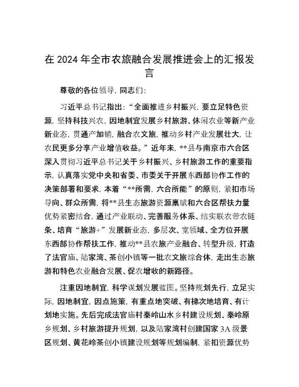 在2024年全市农旅融合发展推进会上的汇报发言 2024-12-09 Word模板 84 购买前,请一定要先点击这里看看,欢迎持续关注,精彩模板每天推送 预览结束,本文件为word文档,一共5页,共2531字,请购买后,下载后查看 购买前,请一定要先点击这里看看,欢迎持续关注,精彩模板每天推送 资源下载下载价格29 RMBVIP免费升级VIP点击检测网盘有效后购买有任何充值和下载问题请加微信:xuexixuexi66 0 演讲发言