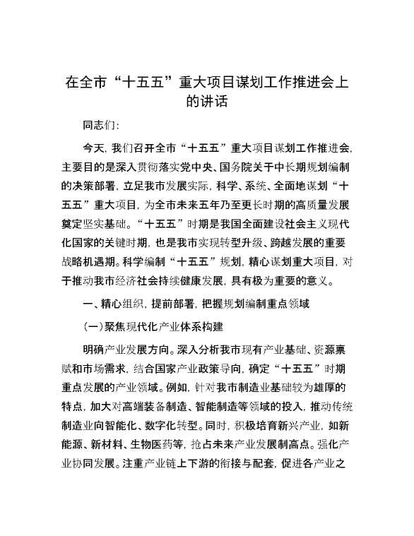 在全市 “十五五” 重大项目谋划工作推进会上的讲话 2024-12-09 Word模板 91 购买前,请一定要先点击这里看看,欢迎持续关注,精彩模板每天推送 预览结束,本文件为word文档,一共11页,共5189字,请购买后,下载后查看 购买前,请一定要先点击这里看看,欢迎持续关注,精彩模板每天推送 资源下载下载价格29 RMBVIP免费升级VIP点击检测网盘有效后购买有任何充值和下载问题请加微信:xuexixuexi66 0 演讲发言