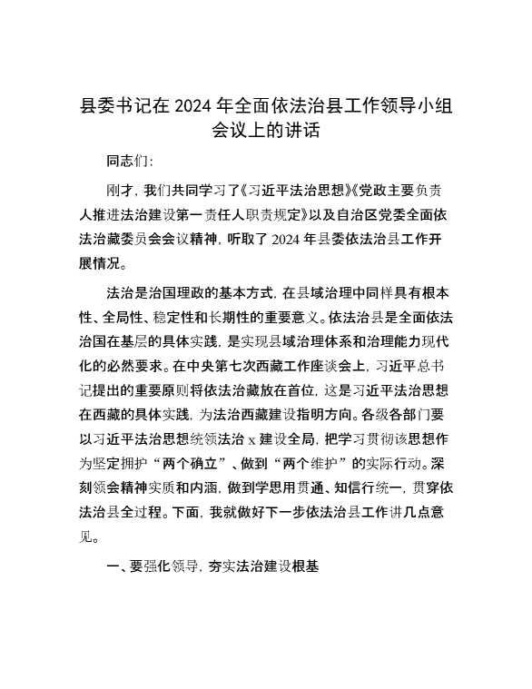 县委书记在2024年全面依法治县工作领导小组会议上的讲话 2024-12-09 Word模板 92 购买前,请一定要先点击这里看看,欢迎持续关注,精彩模板每天推送 预览结束,本文件为word文档,一共4页,共1740字,请购买后,下载后查看 购买前,请一定要先点击这里看看,欢迎持续关注,精彩模板每天推送 资源下载下载价格29 RMBVIP免费升级VIP点击检测网盘有效后购买有任何充值和下载问题请加微信:xuexixuexi66 0 演讲发言