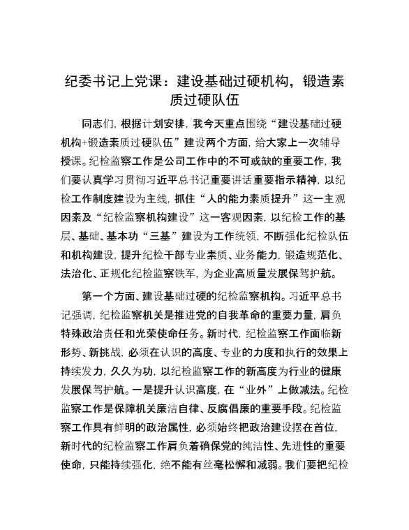 纪委书记上党课:建设基础过硬机构,锻造素质过硬队伍 2024-12-09 Word模板 131 购买前,请一定要先点击这里看看,欢迎持续关注,精彩模板每天推送 预览结束,本文件为word文档,一共7页,共3298字,请购买后,下载后查看 购买前,请一定要先点击这里看看,欢迎持续关注,精彩模板每天推送 资源下载下载价格29 RMBVIP免费升级VIP点击检测网盘有效后购买有任何充值和下载问题请加微信:xuexixuexi66 0 党课及生活会