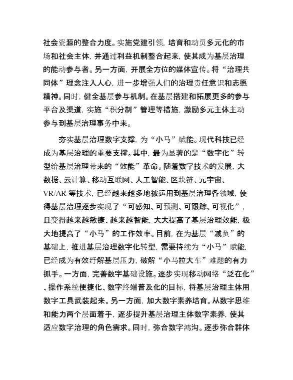 破解基层治理“小马拉大车”难题需协同发力 2024-12-16 Word模板 60 购买前,请一定要先点击这里看看,欢迎持续关注,精彩模板每天推送 预览结束,本文件为word文档,一共4页,共1855字,请购买后,下载后查看 购买前,请一定要先点击这里看看,欢迎持续关注,精彩模板每天推送 资源下载下载价格29 RMBVIP免费升级VIP点击检测网盘有效后购买有任何充值和下载问题请加微信:xuexixuexi66 0 理论学习