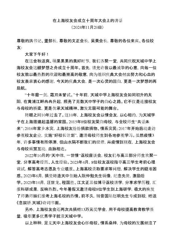 在上海校友会成立十周年大会上的讲话 2024-12-16 Word模板 92 购买前,请一定要先点击这里看看,欢迎持续关注,精彩模板每天推送 预览结束,本文件为word文档,一共3页,共1960字,请购买后,下载后查看 购买前,请一定要先点击这里看看,欢迎持续关注,精彩模板每天推送 资源下载下载价格29 RMBVIP免费升级VIP点击检测网盘有效后购买有任何充值和下载问题请加微信:xuexixuexi66 0 演讲发言