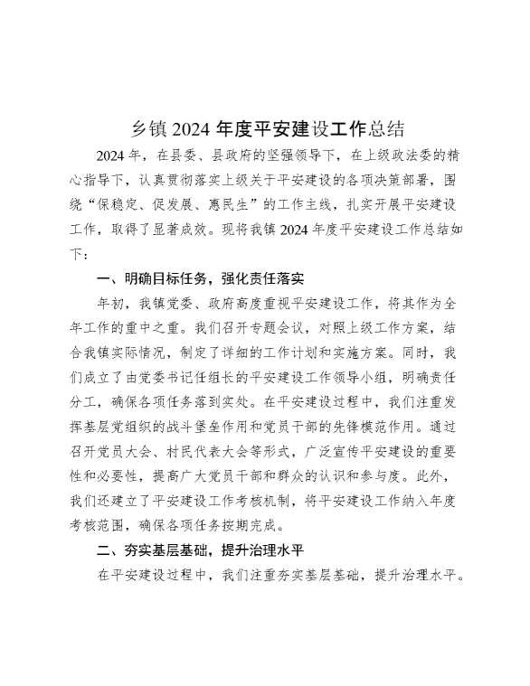 乡镇2024年度平安建设工作总结 2024-12-16 Word模板 91 购买前,请一定要先点击这里看看,欢迎持续关注,精彩模板每天推送 预览结束,本文件为word文档,一共5页,共2088字,请购买后,下载后查看 购买前,请一定要先点击这里看看,欢迎持续关注,精彩模板每天推送 资源下载下载价格29 RMBVIP免费升级VIP点击检测网盘有效后购买有任何充值和下载问题请加微信:xuexixuexi66 0 总结汇报