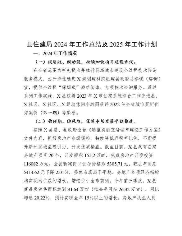 县住建局2024年工作总结及2025年工作计划 2024-12-16 Word模板 87 购买前,请一定要先点击这里看看,欢迎持续关注,精彩模板每天推送 预览结束,本文件为word文档,一共5页,共2158字,请购买后,下载后查看 购买前,请一定要先点击这里看看,欢迎持续关注,精彩模板每天推送 资源下载下载价格29 RMBVIP免费升级VIP点击检测网盘有效后购买有任何充值和下载问题请加微信:xuexixuexi66 0 总结汇报
