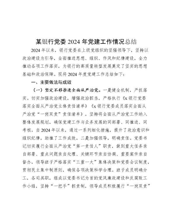 某银行党委2024年党建工作情况总结 2024-12-16 Word模板 95 购买前,请一定要先点击这里看看,欢迎持续关注,精彩模板每天推送 预览结束,本文件为word文档,一共5页,共2090字,请购买后,下载后查看 购买前,请一定要先点击这里看看,欢迎持续关注,精彩模板每天推送 资源下载下载价格29 RMBVIP免费升级VIP点击检测网盘有效后购买有任何充值和下载问题请加微信:xuexixuexi66 0 总结汇报