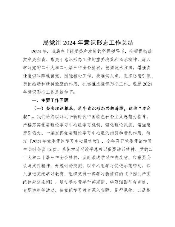 局党组2024年意识形态工作总结 2024-12-16 Word模板 113 购买前,请一定要先点击这里看看,欢迎持续关注,精彩模板每天推送 预览结束,本文件为word文档,一共6页,共2364字,请购买后,下载后查看 购买前,请一定要先点击这里看看,欢迎持续关注,精彩模板每天推送 资源下载下载价格29 RMBVIP免费升级VIP点击检测网盘有效后购买有任何充值和下载问题请加微信:xuexixuexi66 0 总结汇报