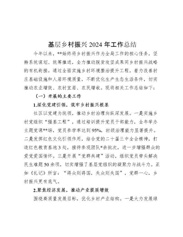 基层乡村振兴2024年工作总结 2024-12-16 Word模板 108 购买前,请一定要先点击这里看看,欢迎持续关注,精彩模板每天推送 预览结束,本文件为word文档,一共5页,共1846字,请购买后,下载后查看 购买前,请一定要先点击这里看看,欢迎持续关注,精彩模板每天推送 资源下载下载价格29 RMBVIP免费升级VIP点击检测网盘有效后购买有任何充值和下载问题请加微信:xuexixuexi66 0 总结汇报