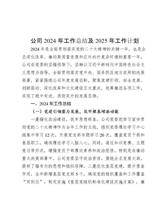 公司2024年工作总结及2025年工作计划 2024-12-16 Word模板 98 购买前,请一定要先点击这里看看,欢迎持续关注,精彩模板每天推送 预览结束,本文件为word文档,一共6页,共2416字,请购买后,下载后查看 购买前,请一定要先点击这里看看,欢迎持续关注,精彩模板每天推送 资源下载下载价格29 RMBVIP免费升级VIP点击检测网盘有效后购买有任何充值和下载问题请加微信:xuexixuexi66 0 总结汇报