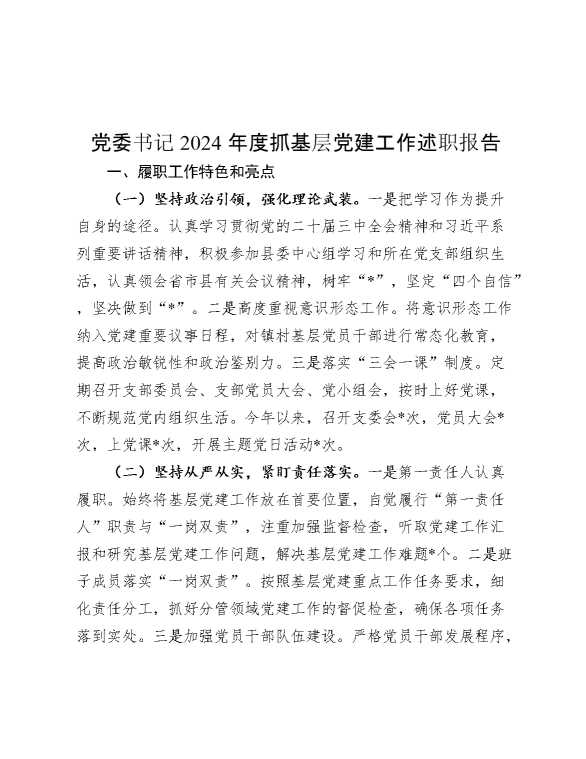 党委书记2024年度抓基层党建工作述职报告 2024-12-16 Word模板 91 购买前,请一定要先点击这里看看,欢迎持续关注,精彩模板每天推送 预览结束,本文件为word文档,一共6页,共2731字,请购买后,下载后查看 购买前,请一定要先点击这里看看,欢迎持续关注,精彩模板每天推送 资源下载下载价格29 RMBVIP免费升级VIP点击检测网盘有效后购买有任何充值和下载问题请加微信:xuexixuexi66 0 总结汇报