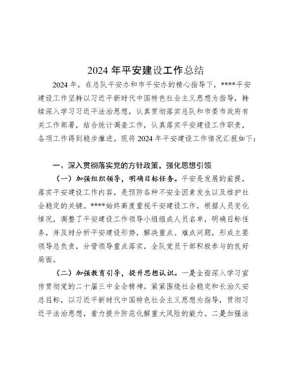 2024年平安建设工作总结 2024-12-16 Word模板 92 购买前,请一定要先点击这里看看,欢迎持续关注,精彩模板每天推送 预览结束,本文件为word文档,一共6页,共2555字,请购买后,下载后查看 购买前,请一定要先点击这里看看,欢迎持续关注,精彩模板每天推送 资源下载下载价格29 RMBVIP免费升级VIP点击检测网盘有效后购买有任何充值和下载问题请加微信:xuexixuexi66 0 总结汇报